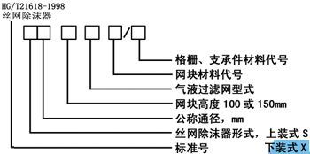 举例二:DN4000MM,H=100MM,气液过滤网形式为DP型,材质为316L,格栅、支撑件材质为304的下装式丝网除沫器,标记为:HG/T21618-1998丝网除雾器X4000-100 DP 316L/304。